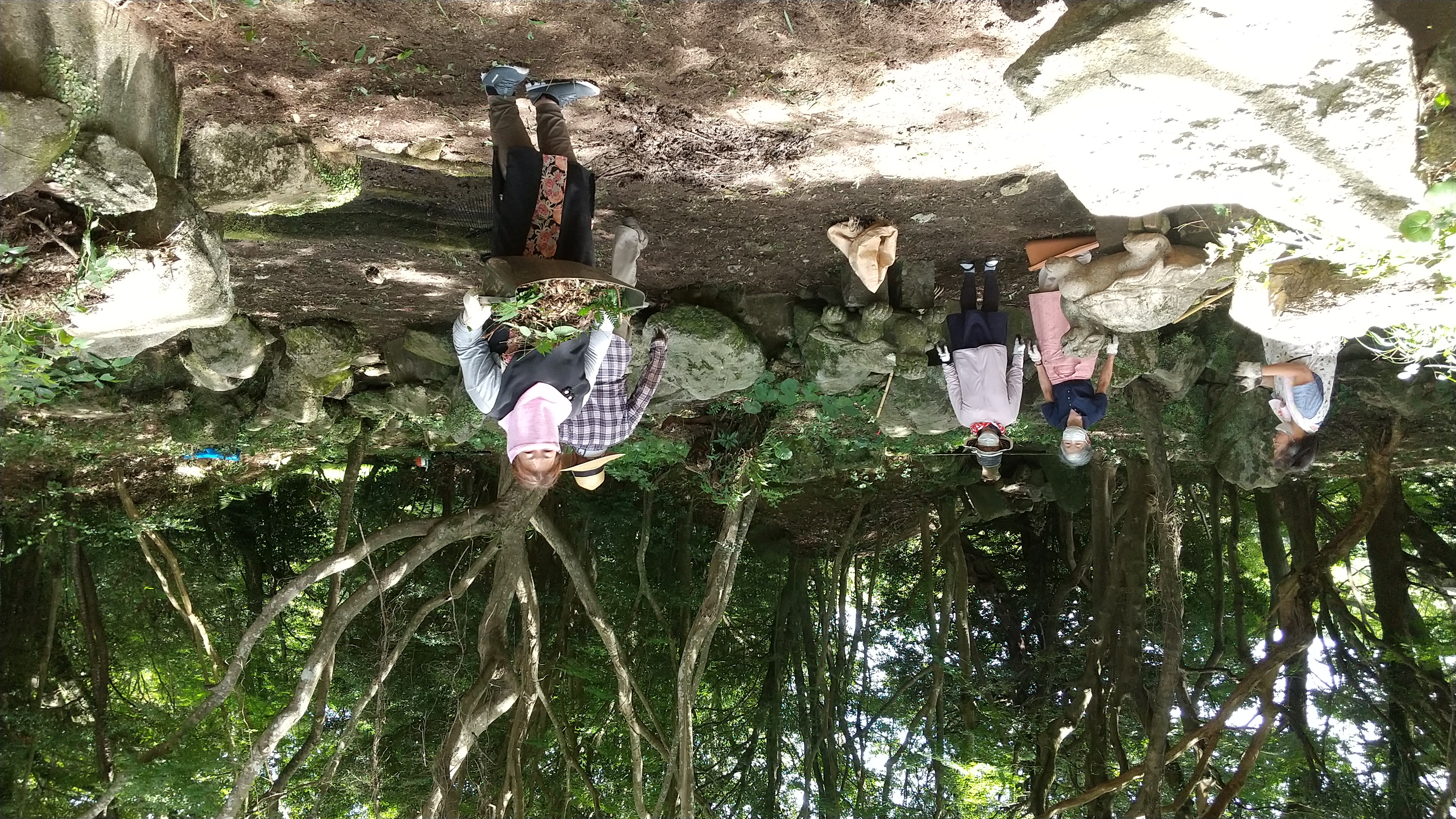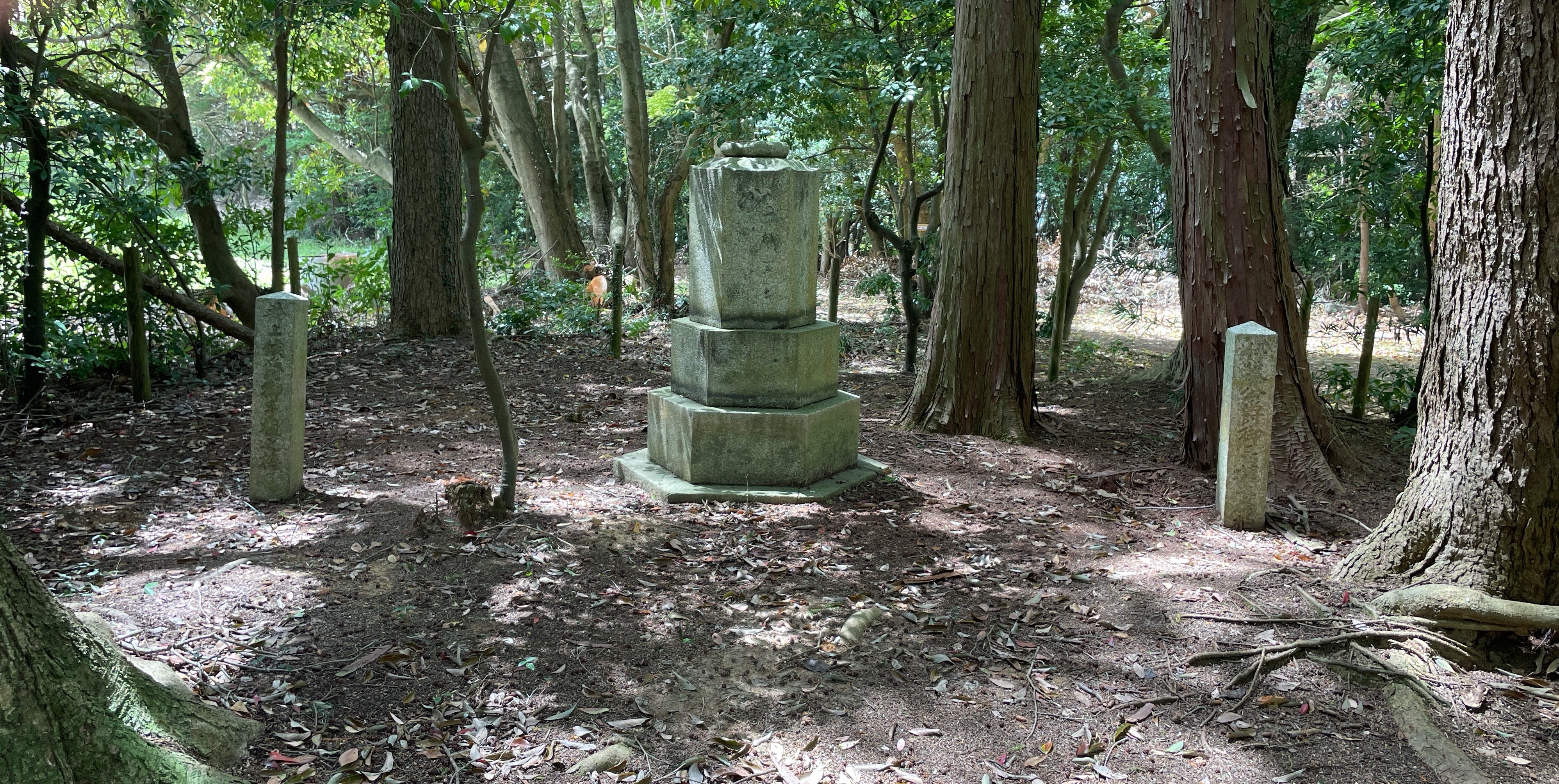 2 山荘内にある植樹記念碑を挟んで、左 井上馨候候と右 伊藤博文候の手植え記念碑 撮影:藤渕