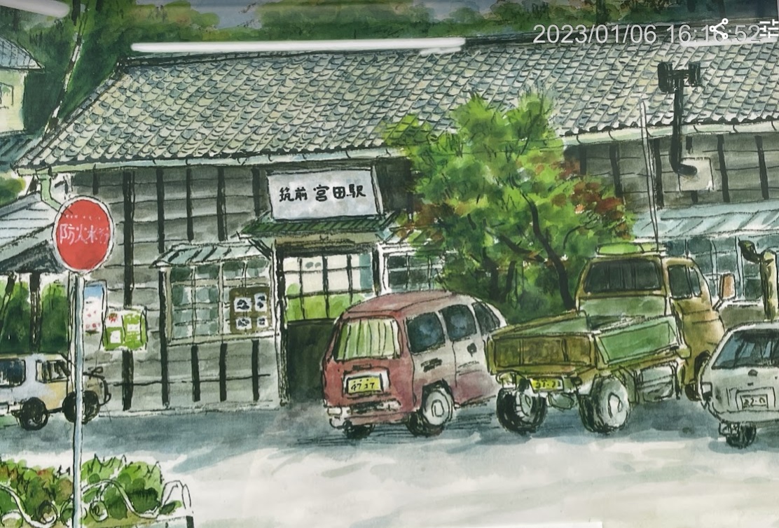 17 当時の国鉄「筑前宮田駅(平成元年廃線)」図、作者不明 このすぐ上に「二坑 坑口」がありました。