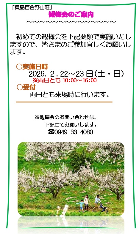山荘観梅会開催のご案内