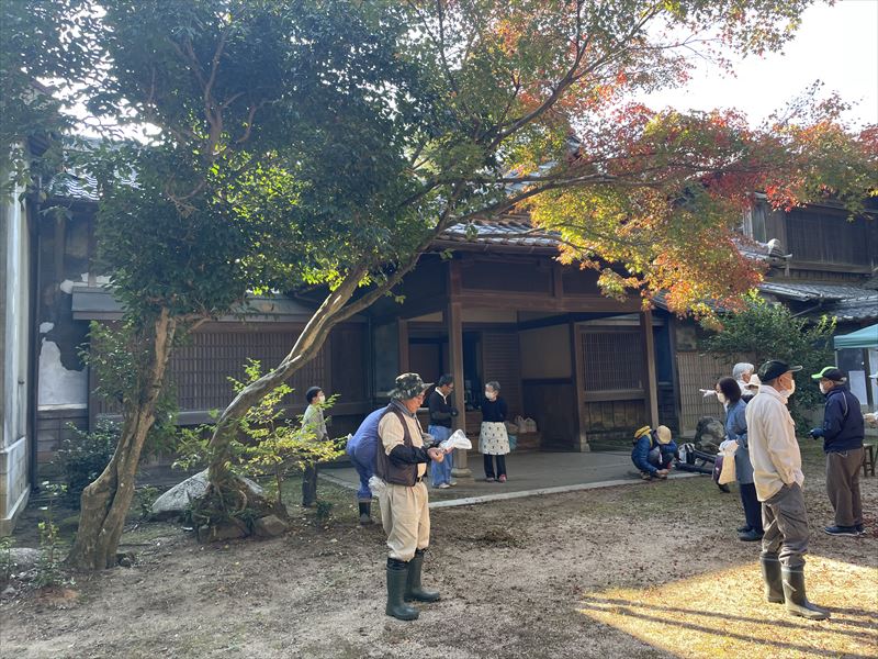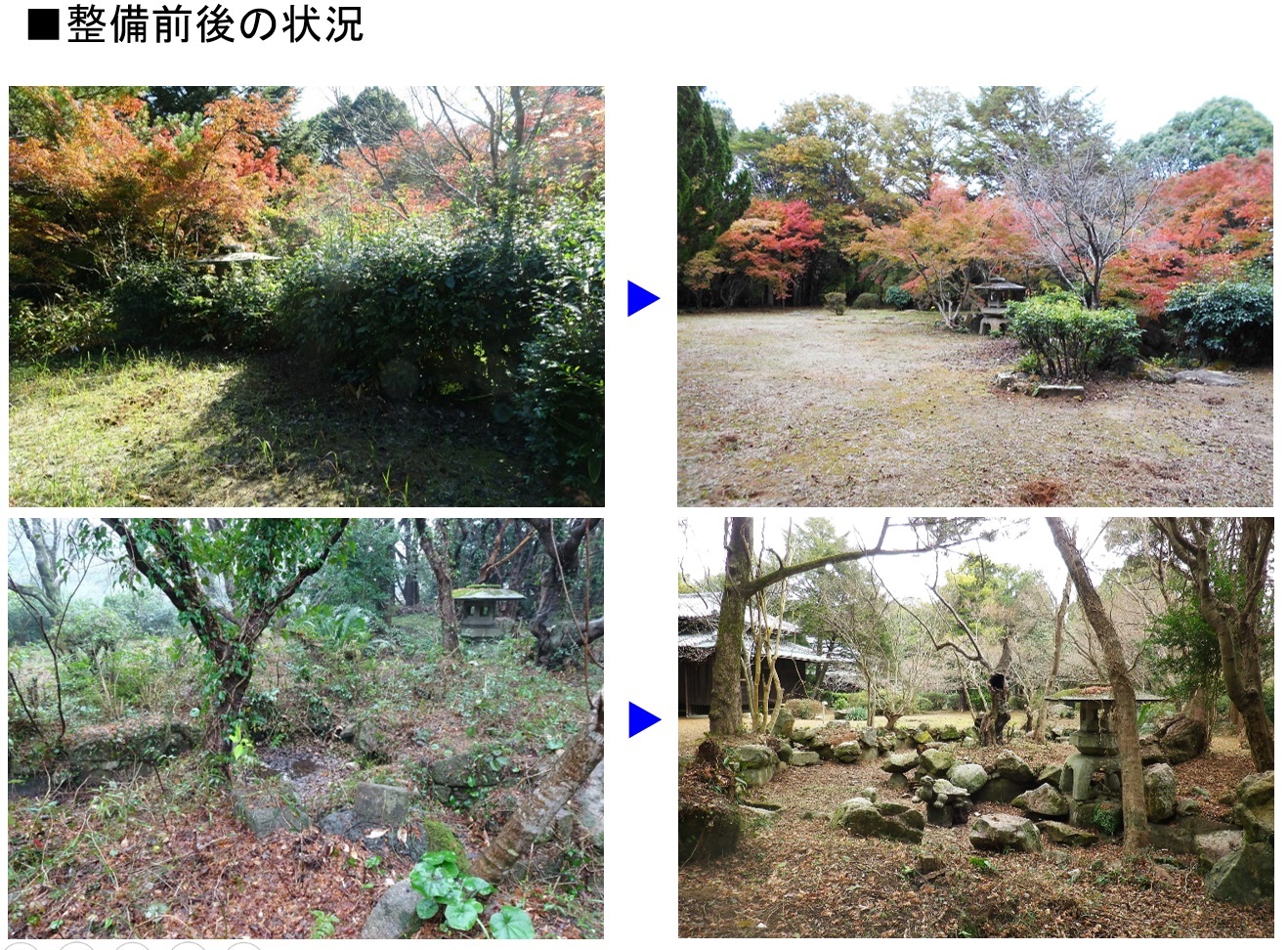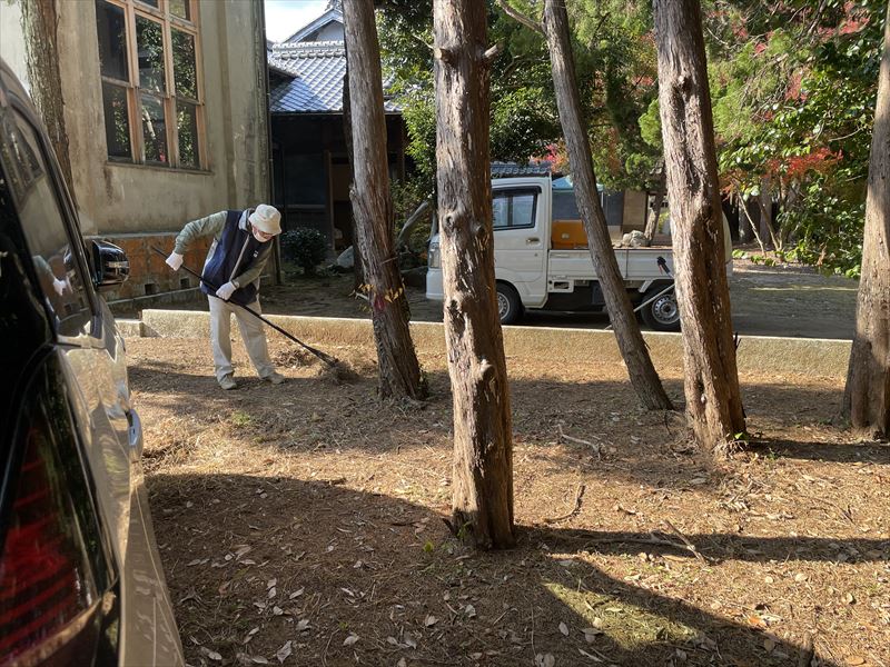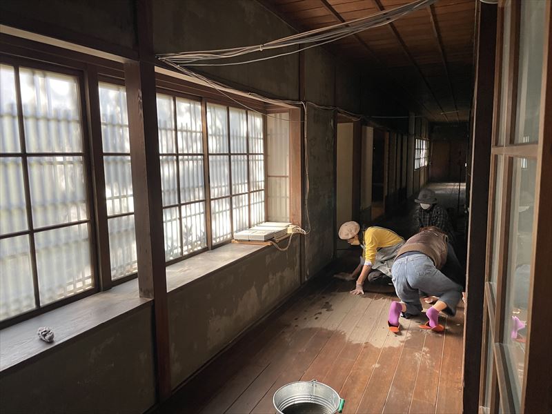 下写真:庭の外掃や女中部屋、廊下の清掃をしています(令和4年)。
